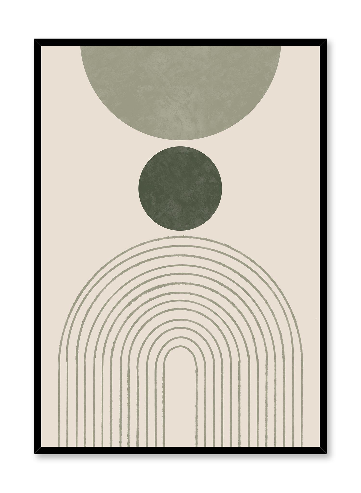 What do yoga, home decor and life all have in common? They’re all about balance! The ‘Balanced’ poster is an invitation to find your center while enjoying the beauty of your home. We love this print’s composition featuring a green-colored striped arch topped with a dark-green circle and faded green half-circle. The rich textures and soft colors in this boho art print make it a must-have for those seeking zen decor.